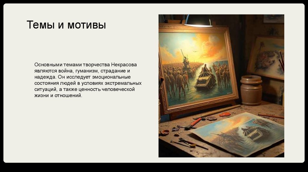 Темы и мотивыОсновными темами творчества Некрасова