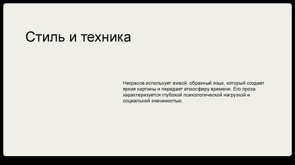 Стиль и техникаНекрасов использует живой, образный язык, который создает