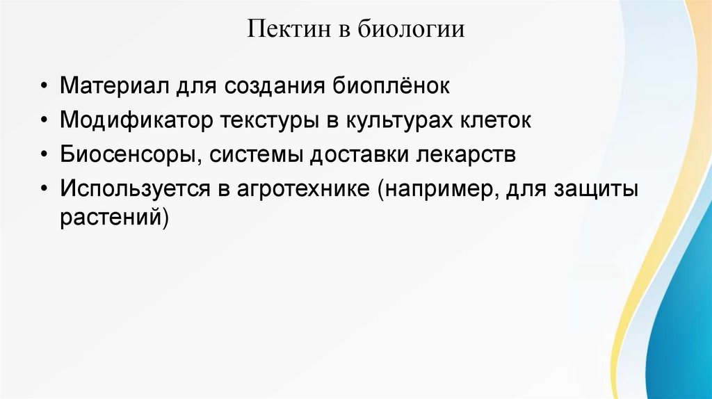 Пектин в биологии• Материал для создания биоплёнок