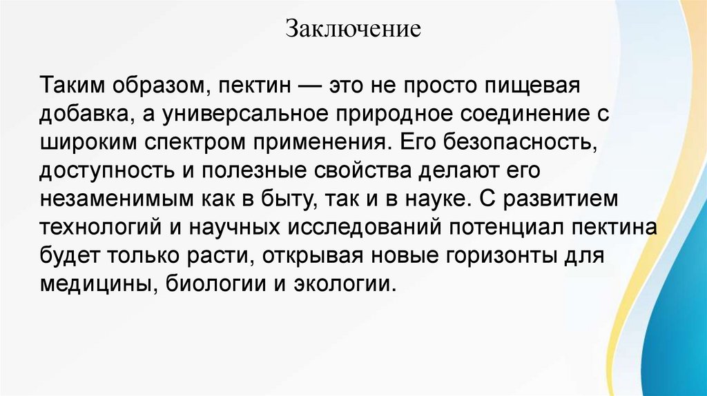 ЗаключениеТаким образом, пектин — это не просто пищевая