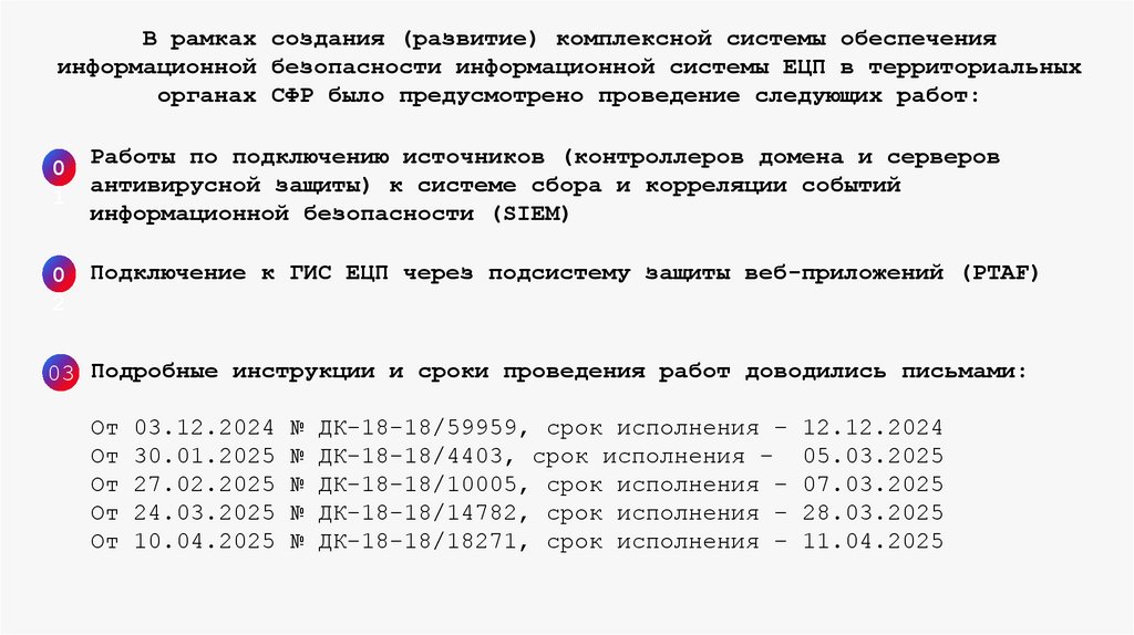 03 Подробные инструкции и сроки проведения работ доводились письмами: