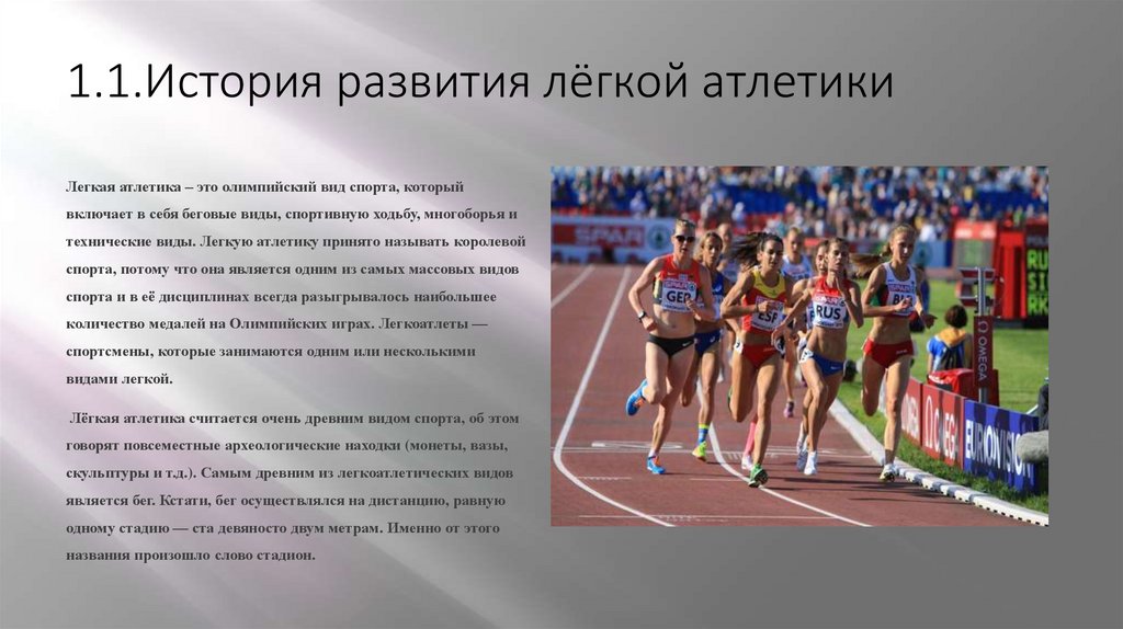 1.1.История развития лёгкой атлетикиЛегкая атлетика – это олимпийский вид спорта, который