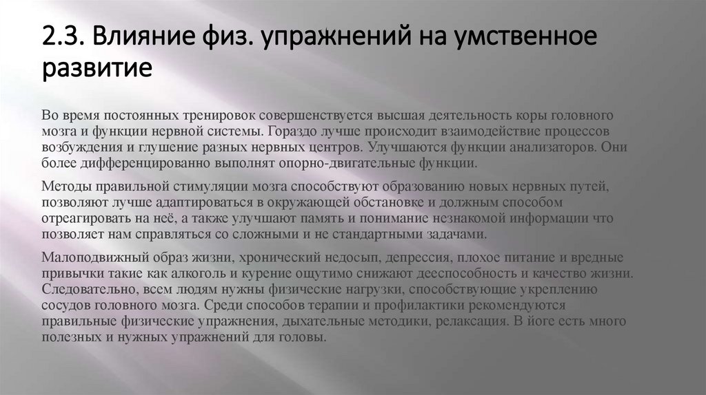 2.3. Влияние физ. упражнений на умственноеразвитие