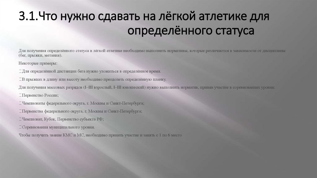 3.1.Что нужно сдавать на лёгкой атлетике дляопределённого статуса