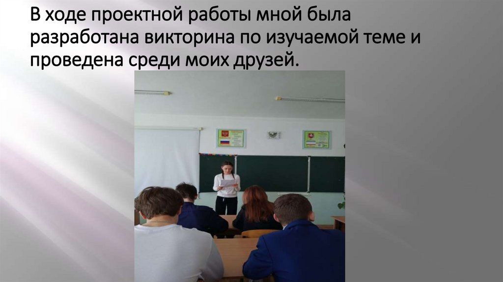 В ходе проектной работы мной быларазработана викторина по изучаемой теме и