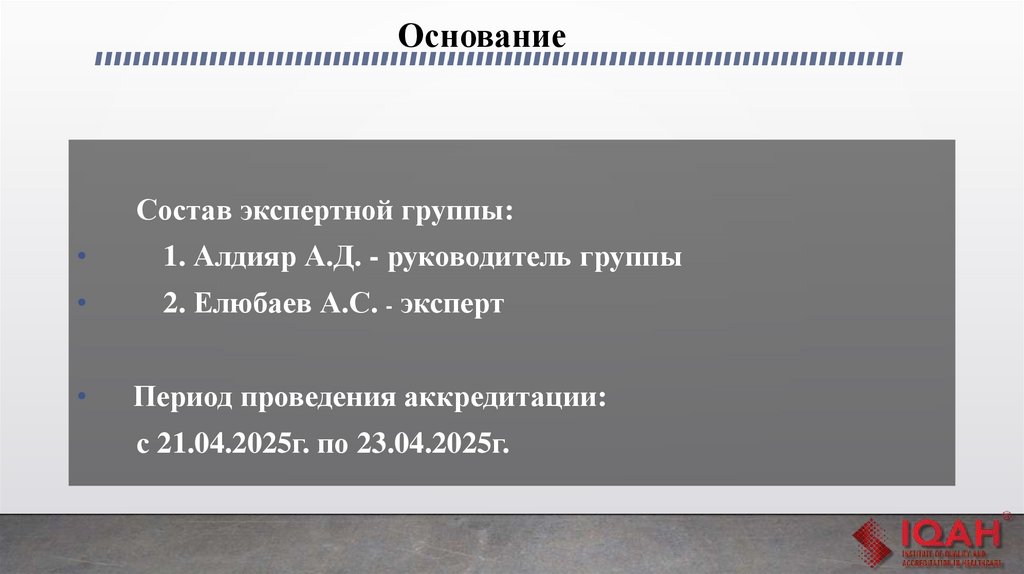 Состав экспертной группы:1. Алдияр А.Д. - руководитель группы