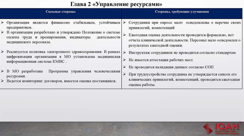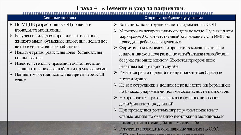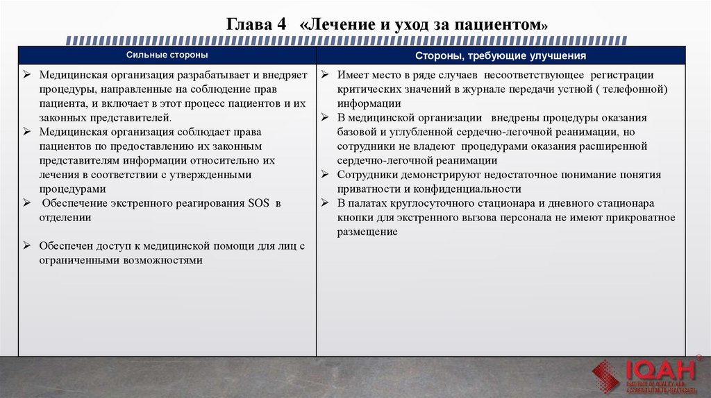 Глава 4 «Лечение и уход за пациентом»Сильные стороны