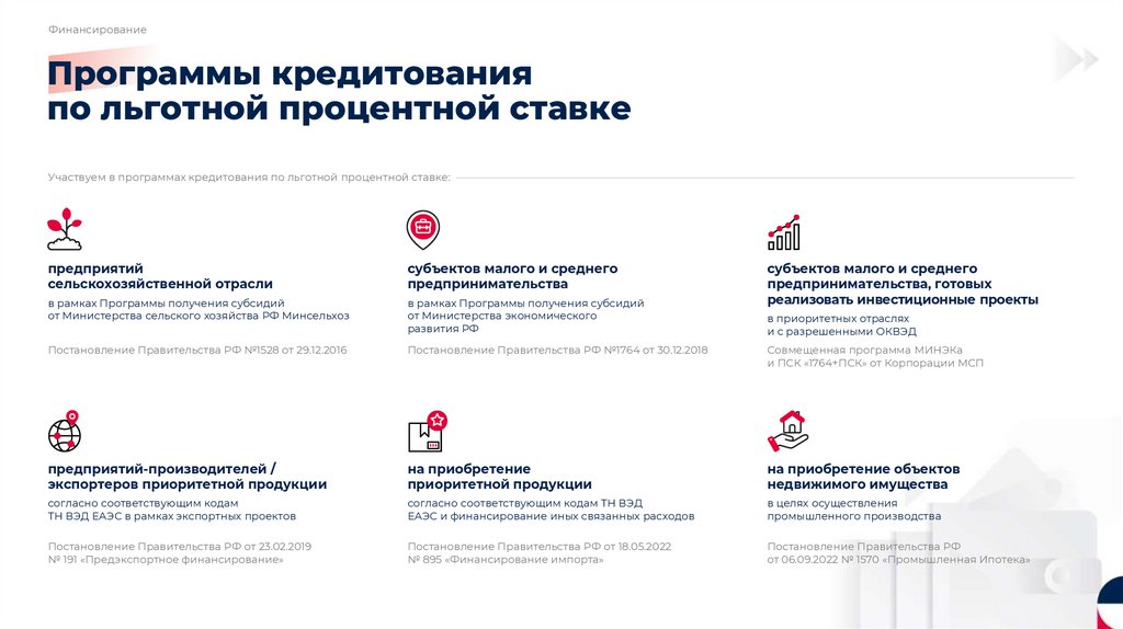 • Программы кредитования