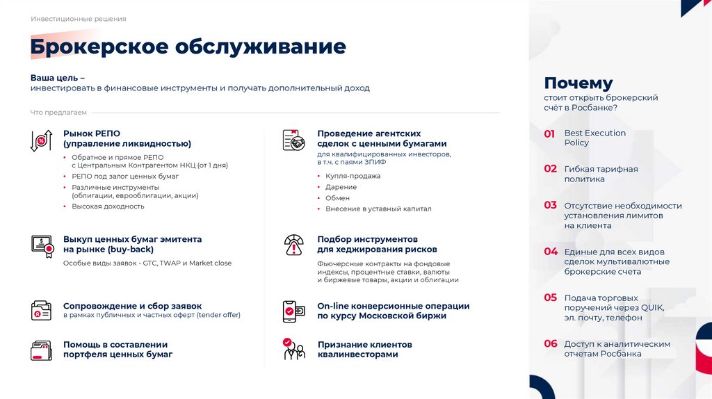 • Брокерское обслуживание