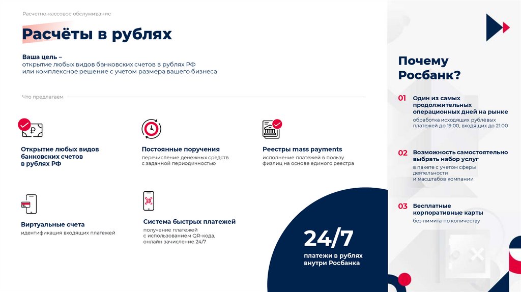 Расчетно-кассовое обслуживаниеРасчёты в рублях