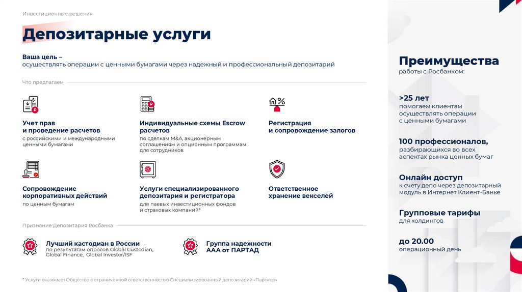 • Депозитарные услуги