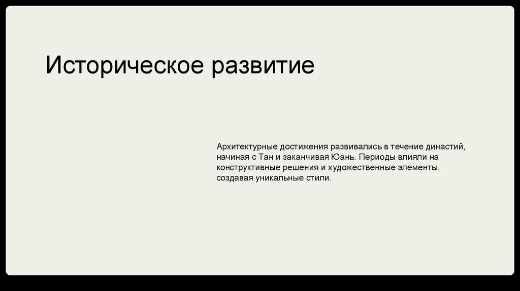 Историческое развитиеАрхитектурные достижения развивались в течение династий,