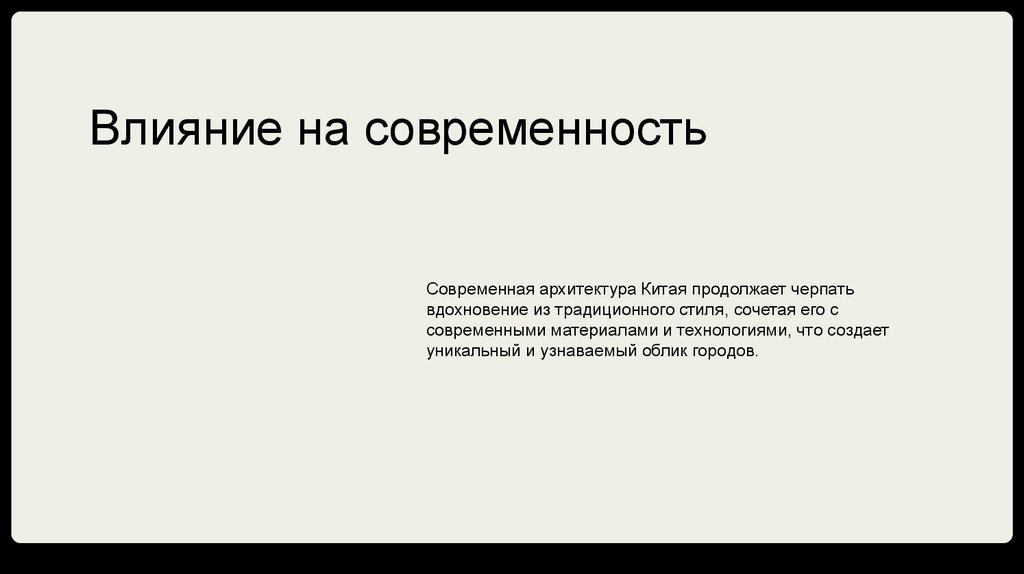 Влияние на современностьСовременная архитектура Китая продолжает черпать
