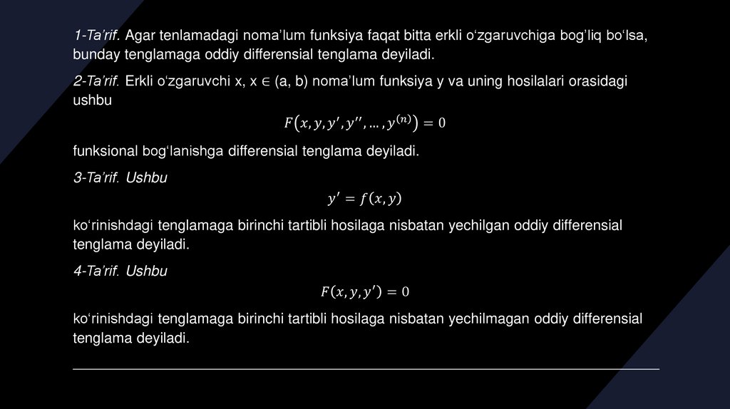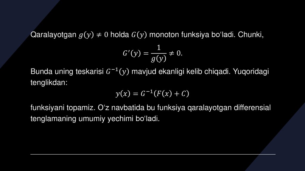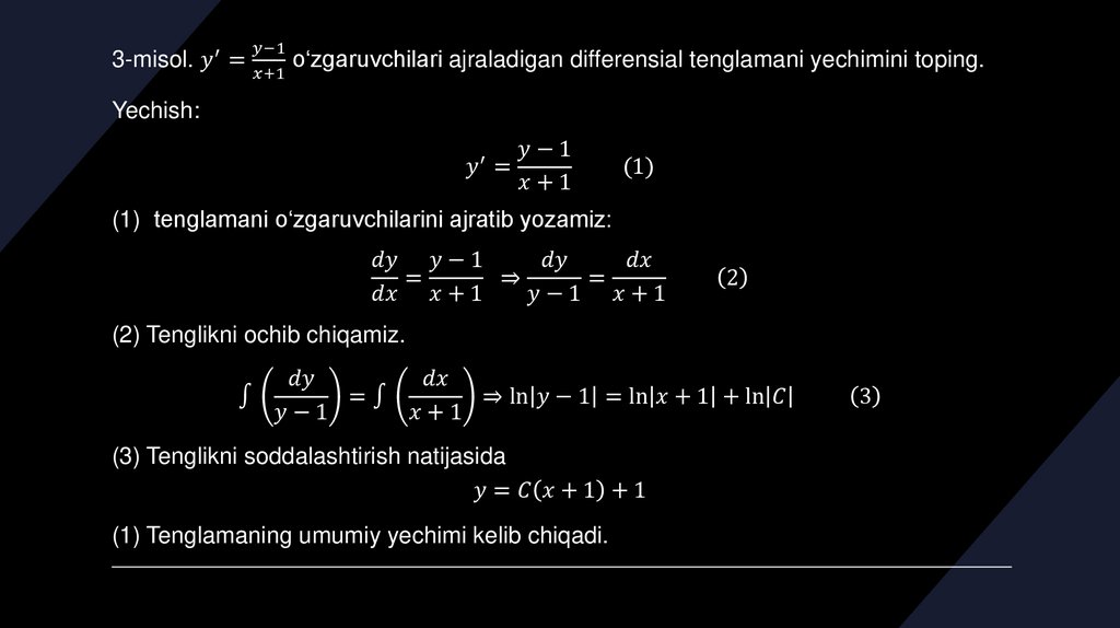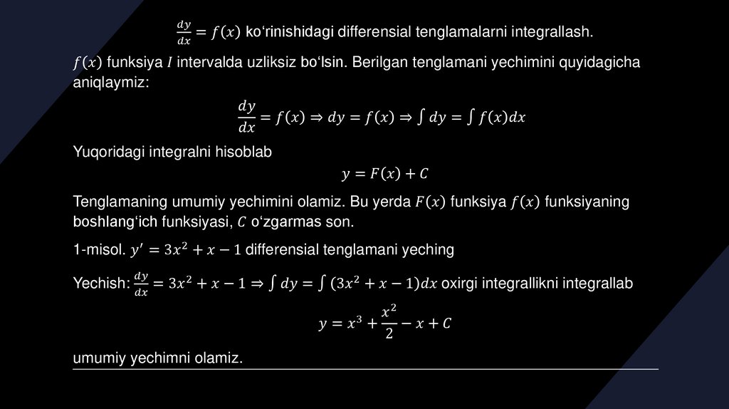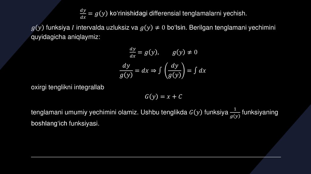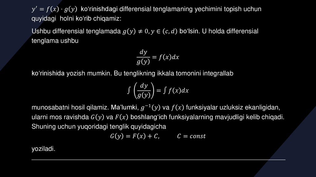 O‘zgaruvchilari ajraladigan differensial tenglamalar