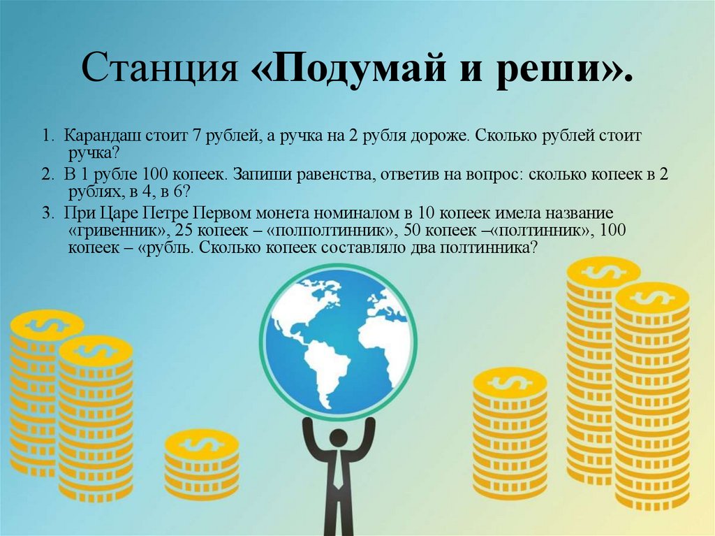 «гривенник», 25 копеек – «полполтинник», 50 копеек –«полтинник», 100