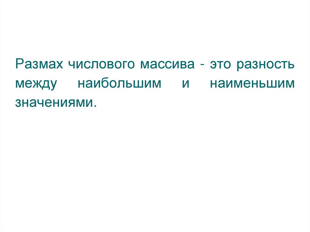 Размах числового массива - это разностьмежду наибольшим и наименьшим