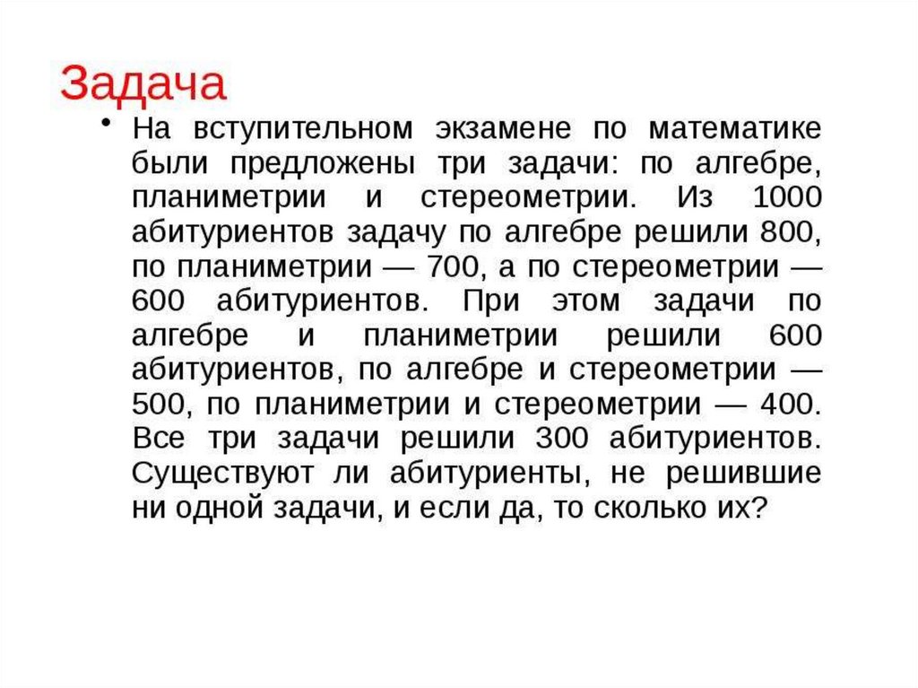 абитуриентов задачу по алгебре решили 800,