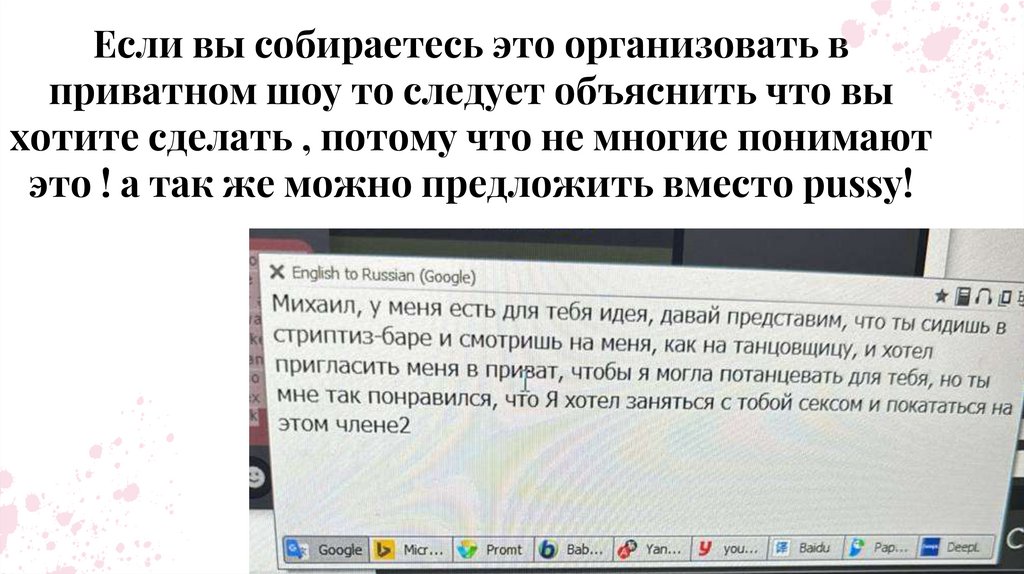 Если вы собираетесь это организовать вприватном шоу то следует объяснить что вы