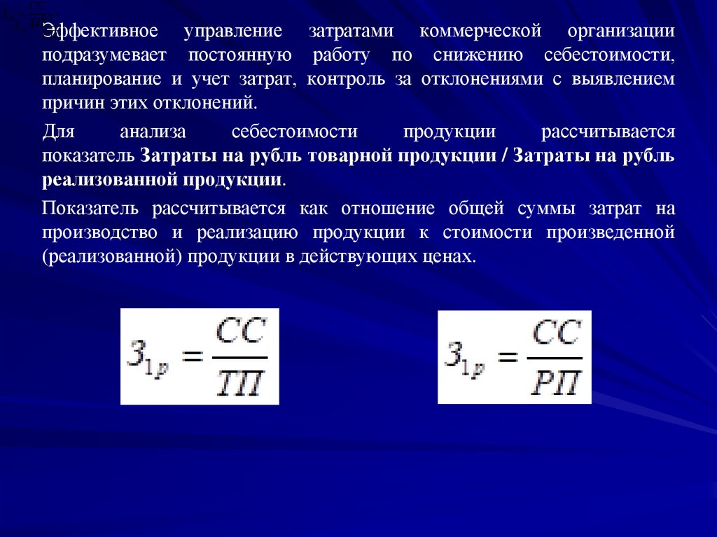 показатель Затраты на рубль товарной продукции / Затраты на рубль
