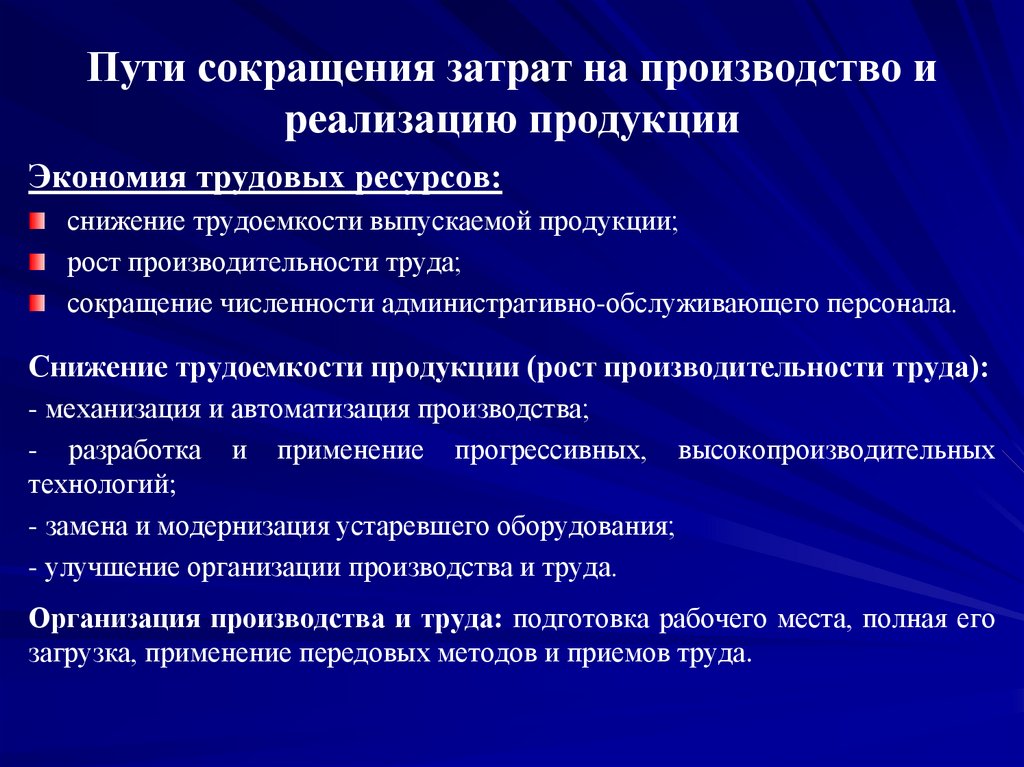 Экономия трудовых ресурсов:снижение трудоемкости выпускаемой продукции;