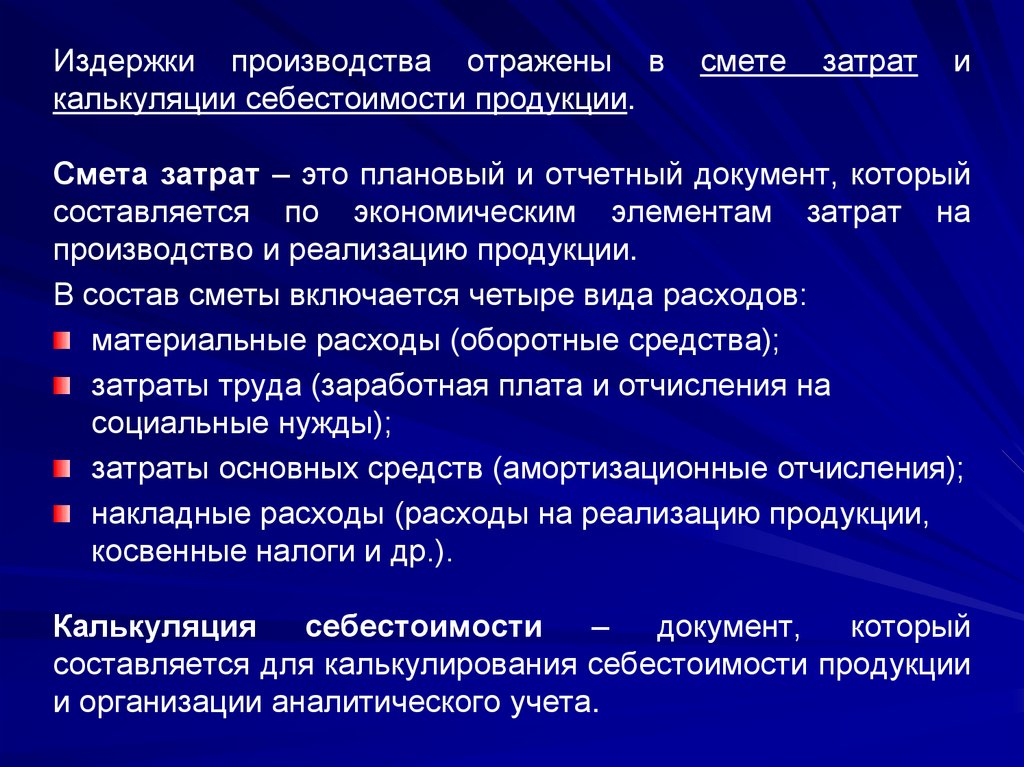 Издержки производства отражены вкалькуляции себестоимости продукции.