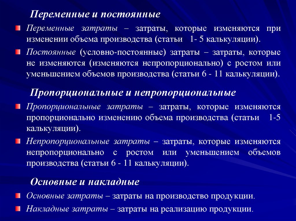 Переменные и постоянныеПеременные затраты – затраты, которые изменяются при