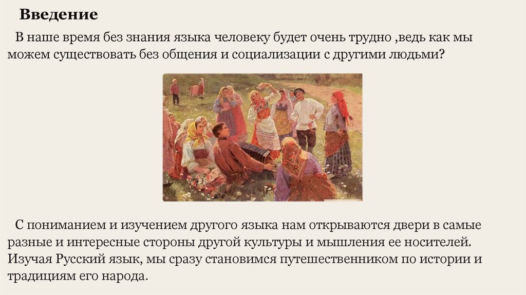 ВведениеВ наше время без знания языка человеку будет очень трудно ,ведь как мы