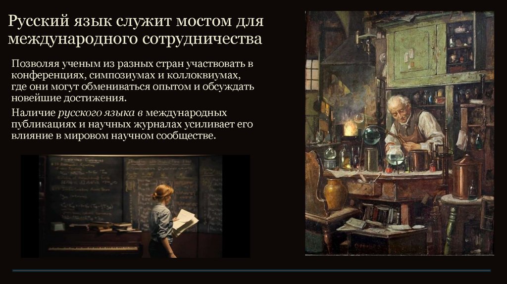 Русский язык также играет важную роль в науке иобразовании. Многие научные работы, особенно в области