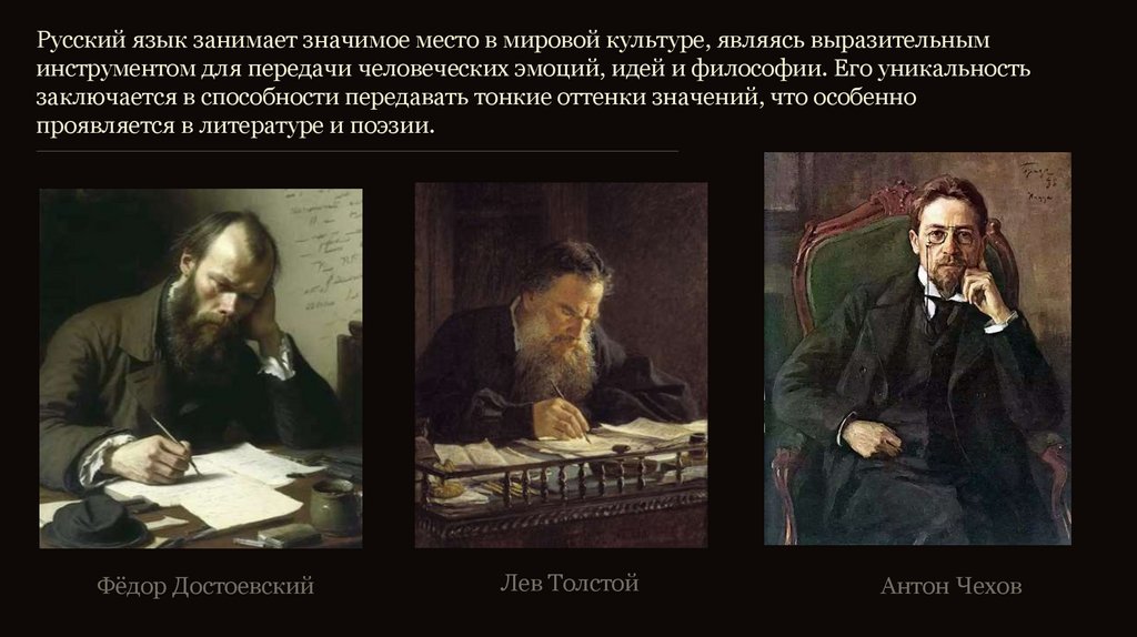 Русский язык занимает значимое место в мировой культуре, являясь выразительныминструментом для передачи человеческих эмоций, идей и философии. Его уникальность