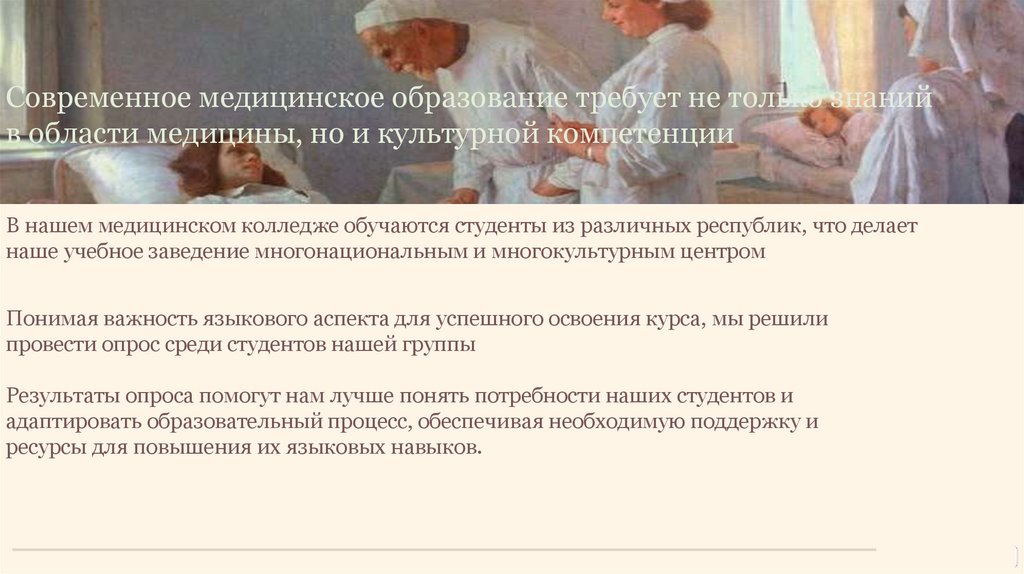 Современное медицинское образование требует не только знанийв области медицины, но и культурной компетенции