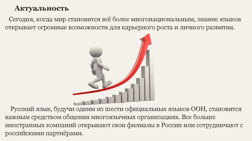 АктуальностьСегодня, когда мир становится всё более многонациональным, знание языков