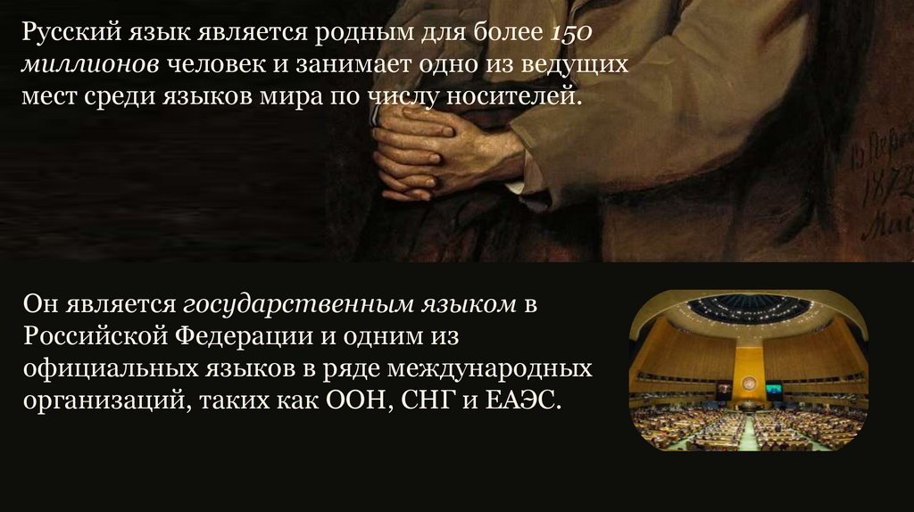 Русский язык является родным для более 150миллионов человек и занимает одно из ведущих