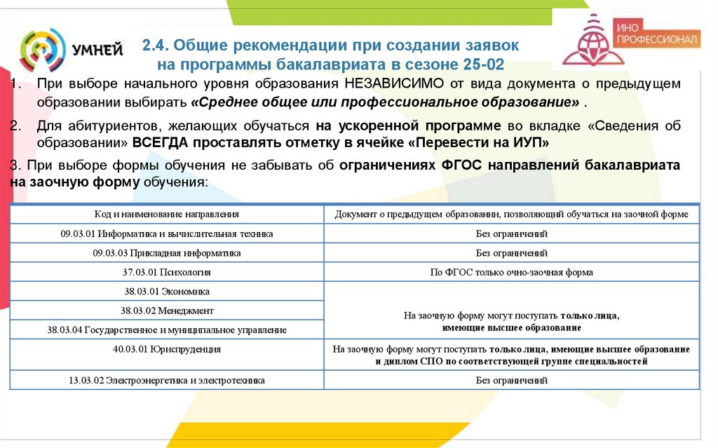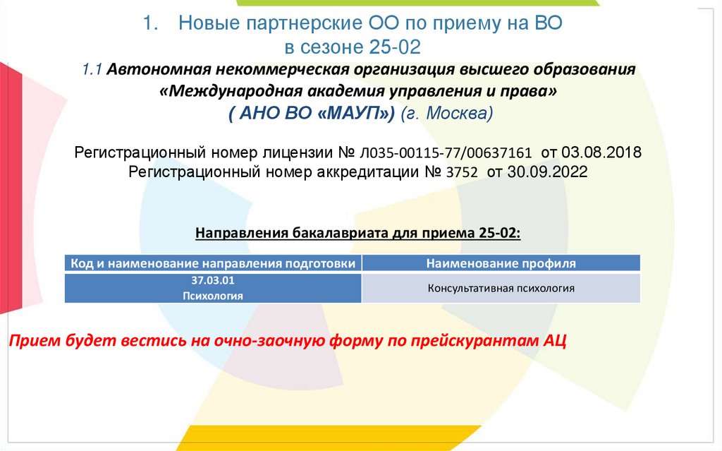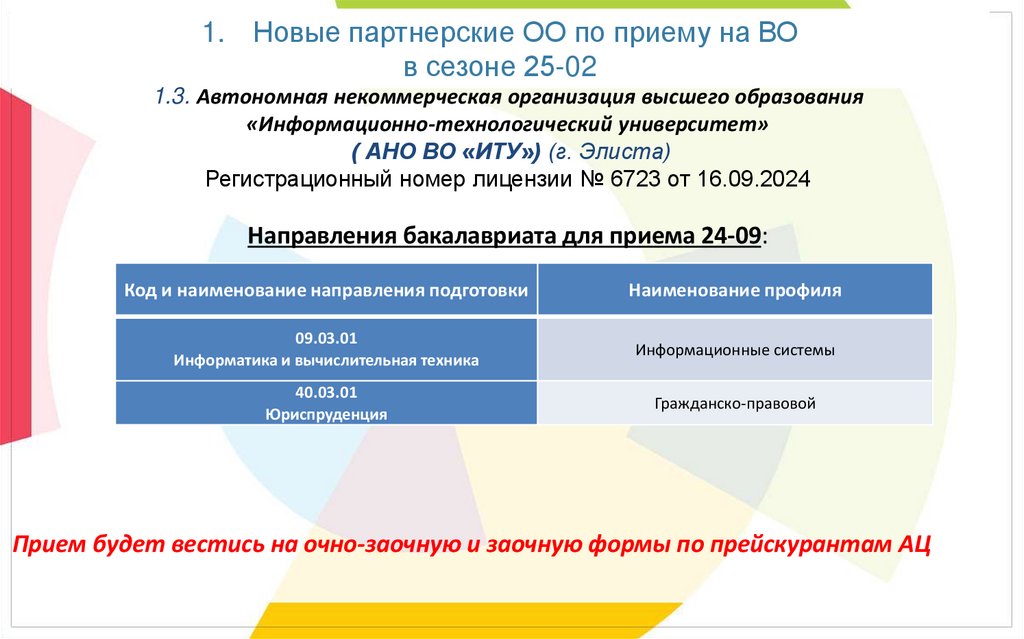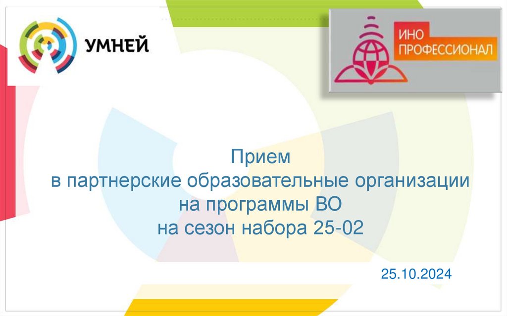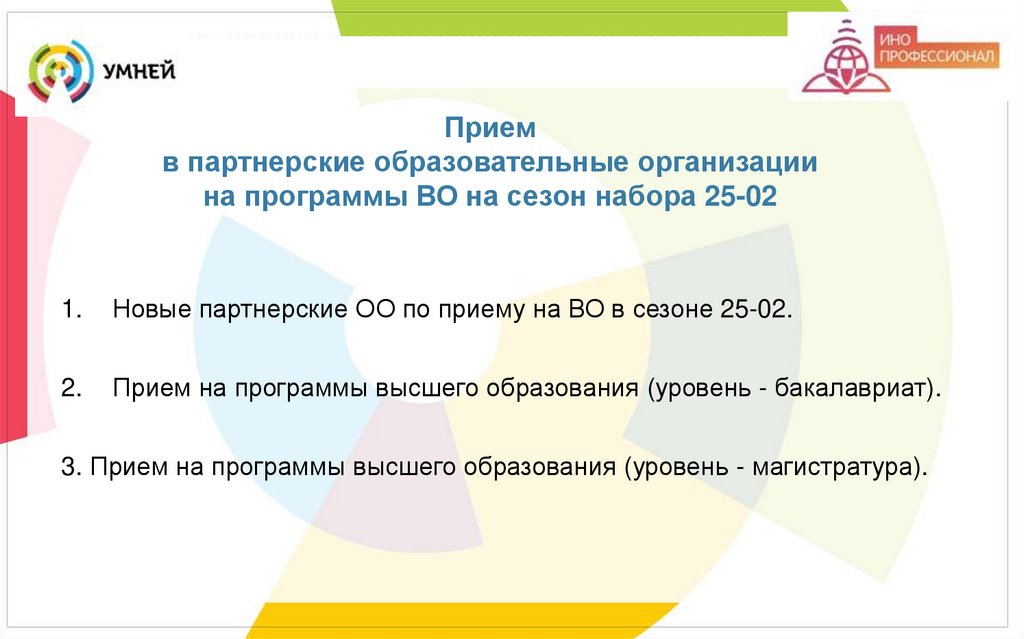 Прием в партнерские образовательные организации на программы ВО на сезон набора 25-02