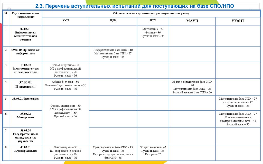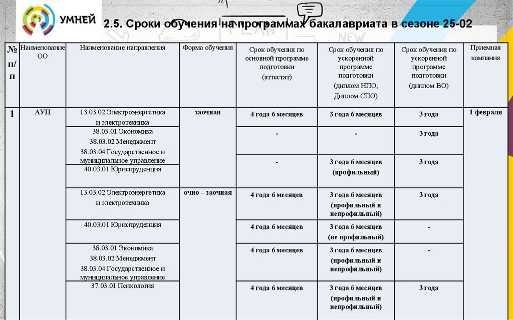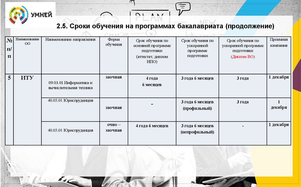 11. 2.5. Сроки обучения на программах бакалавриата (продолжение)
