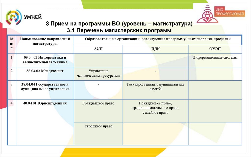3 Прием на программы ВО (уровень – магистратура)3.1 Перечень магистерских программ