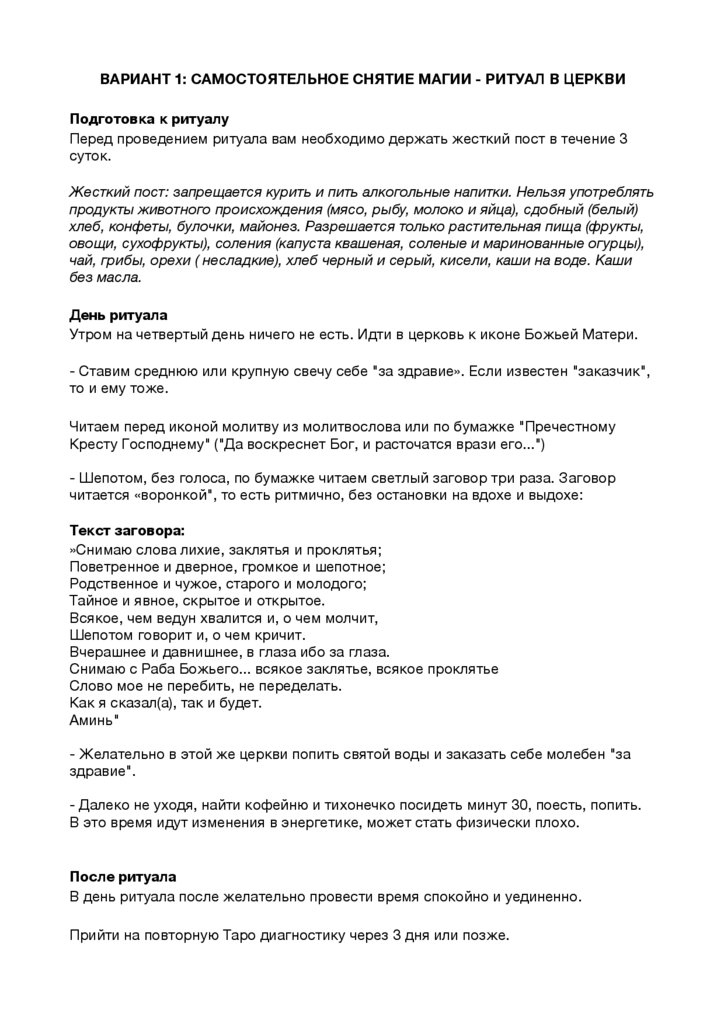 ВАРИАНТ 1: САМОСТОЯТЕЛЬНОЕ СНЯТИЕ МАГИИ - РИТУАЛ В ЦЕРКВИПодготовка к ритуалу