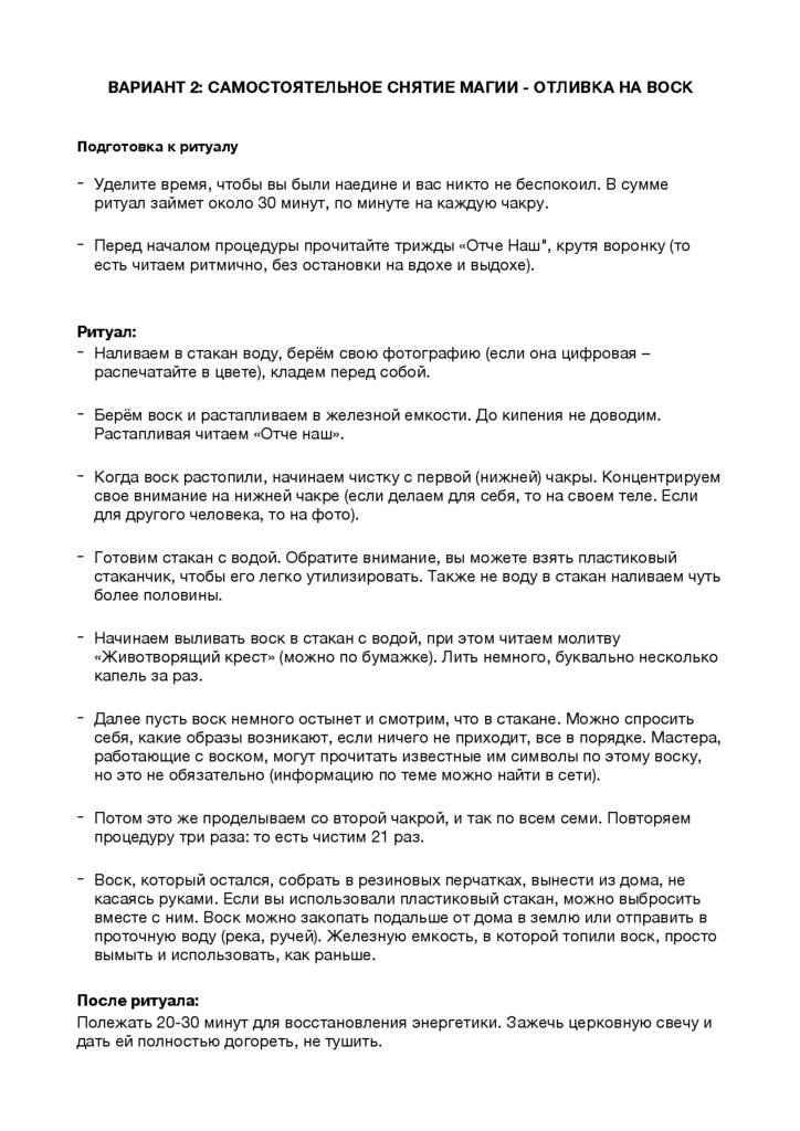 ВАРИАНТ 2: САМОСТОЯТЕЛЬНОЕ СНЯТИЕ МАГИИ - ОТЛИВКА НА ВОСКПодготовка к ритуалу