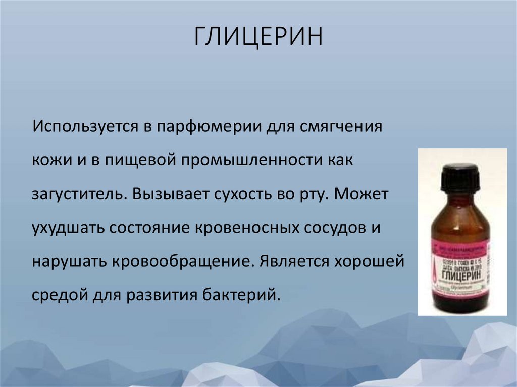 ГЛИЦЕРИНИспользуется в парфюмерии для смягчения