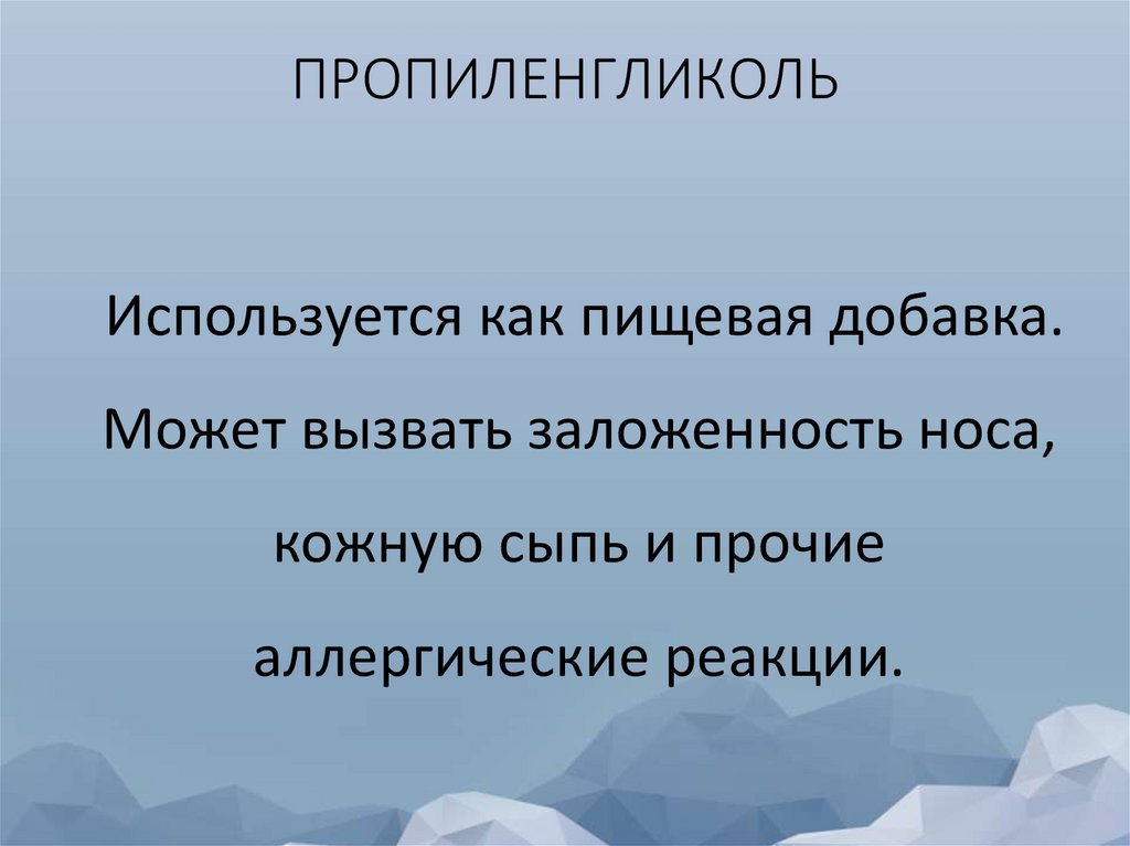 ПРОПИЛЕНГЛИКОЛЬИспользуется как пищевая добавка.