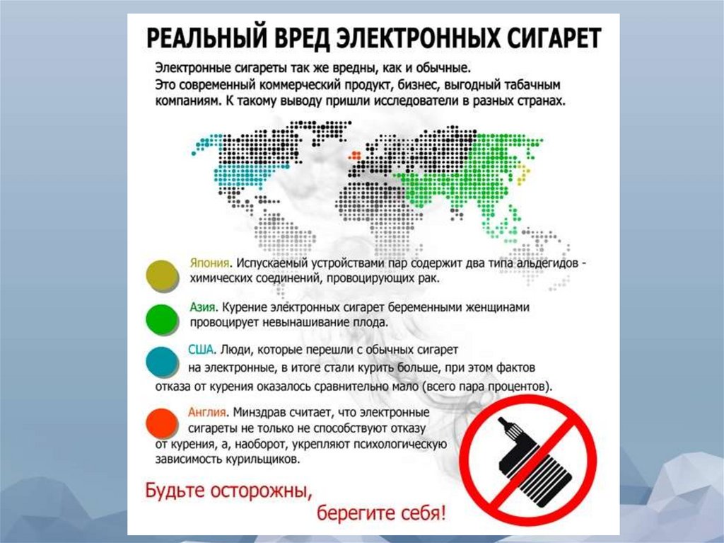 • Пары, выпускаемые ЭС, не безвредны для окружающих.