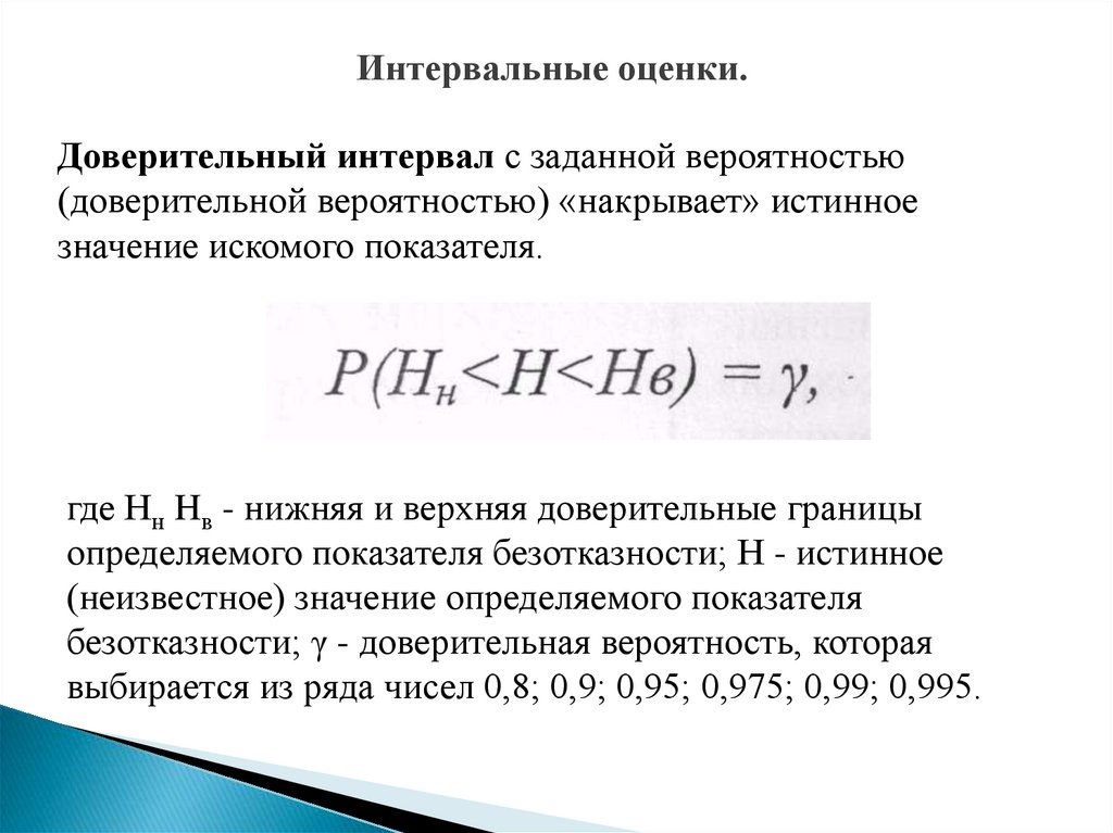 выбирается из ряда чисел 0,8; 0,9; 0,95; 0,975; 0,99; 0,995.
