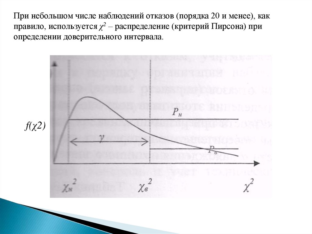 При небольшом числе наблюдений отказов (порядка 20 и менее), какправило, используется χ2 – распределение (критерий Пирсона) при