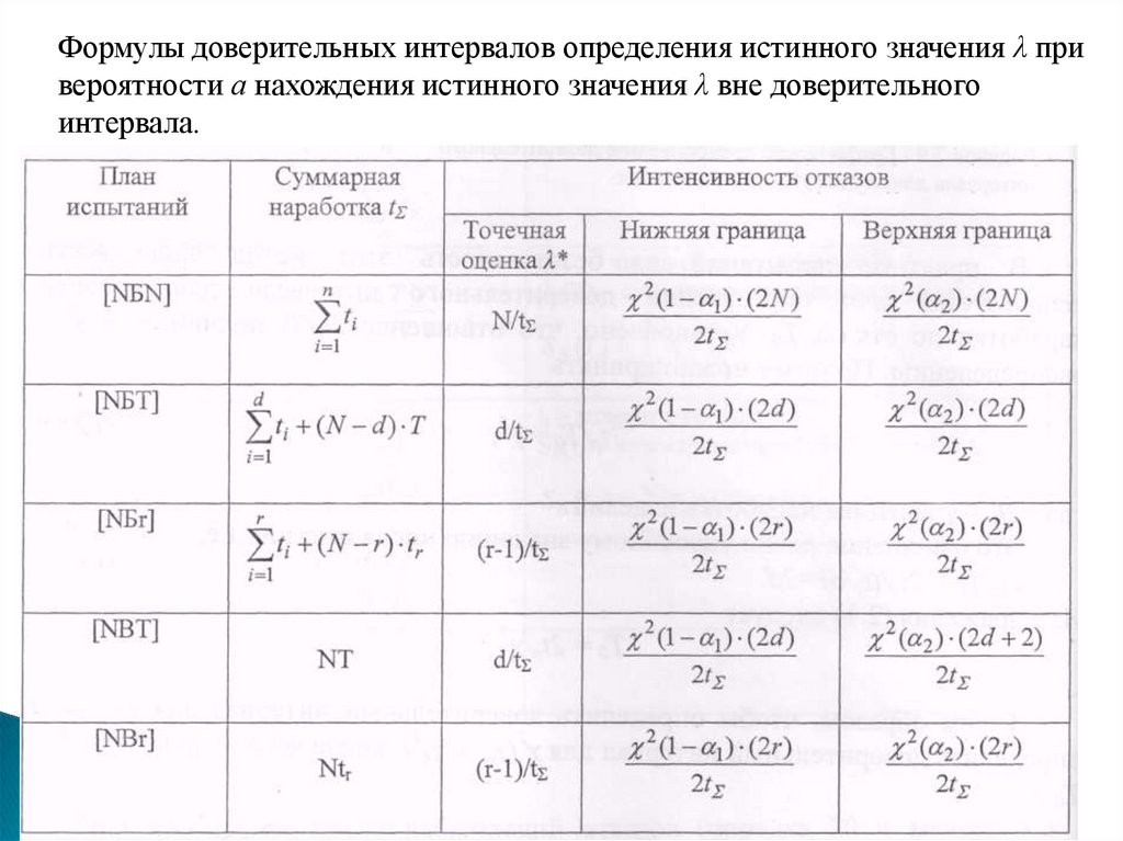 Формулы доверительных интервалов определения истинного значения λ привероятности а нахождения истинного значения λ вне доверительного