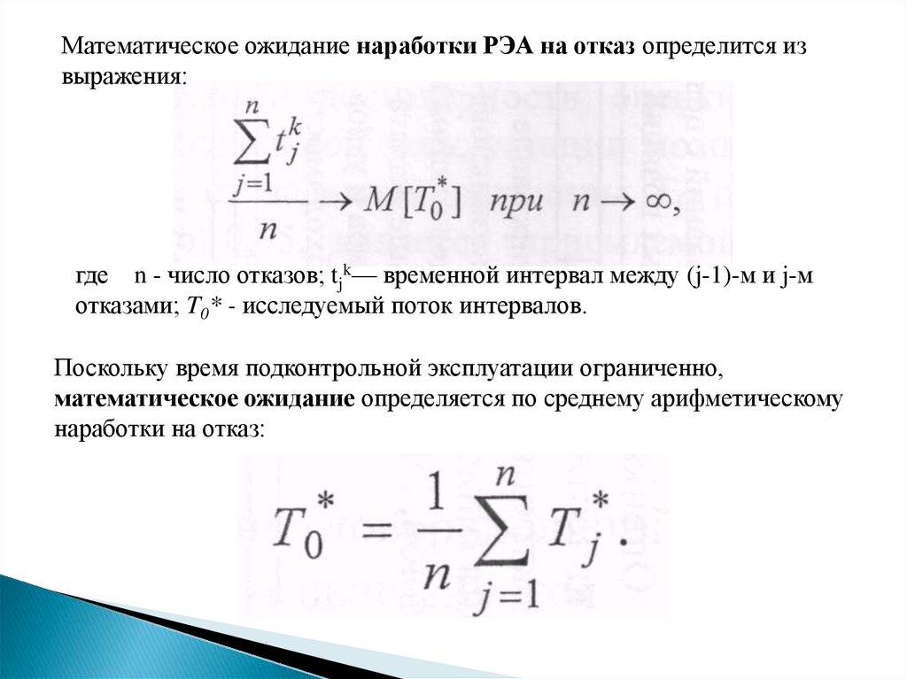Математическое ожидание наработки РЭА на отказ определится извыражения: