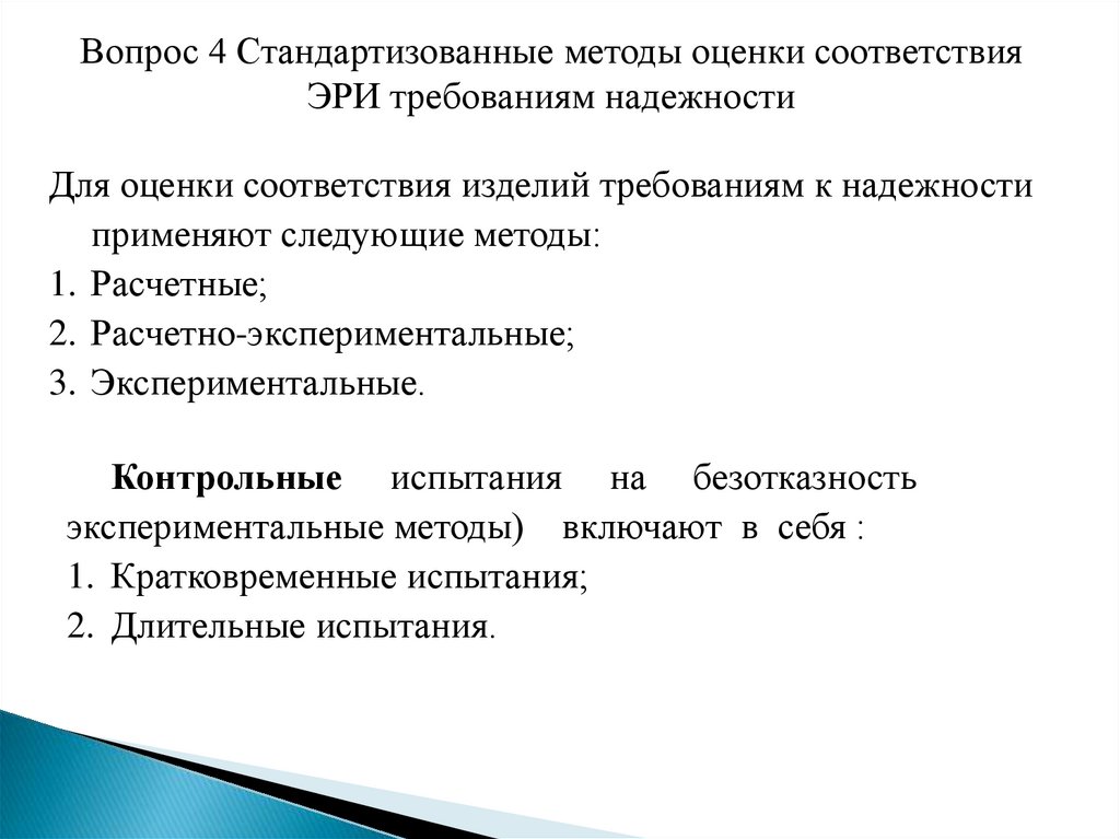 Вопрос 4 Стандартизованные методы оценки соответствияЭРИ требованиям надежности