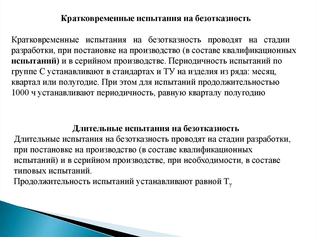Кратковременные испытания на безотказностьКратковременные испытания на безотказность проводят на стадии