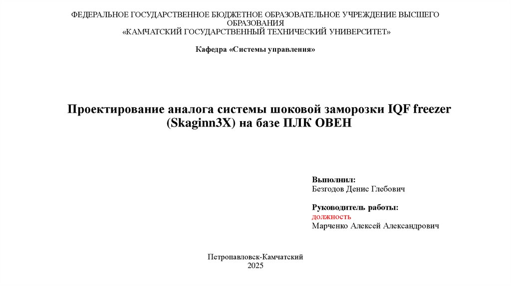 «КАМЧАТСКИЙ ГОСУДАРСТВЕННЫЙ ТЕХНИЧЕСКИЙ УНИВЕРСИТЕТ»