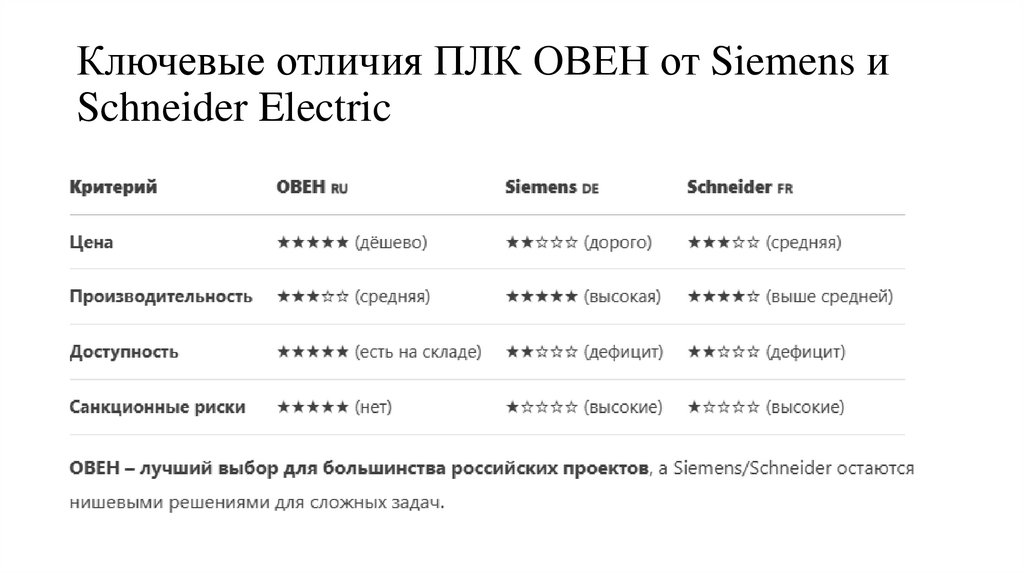 Ключевые отличия ПЛК ОВЕН от Siemens иSchneider Electric