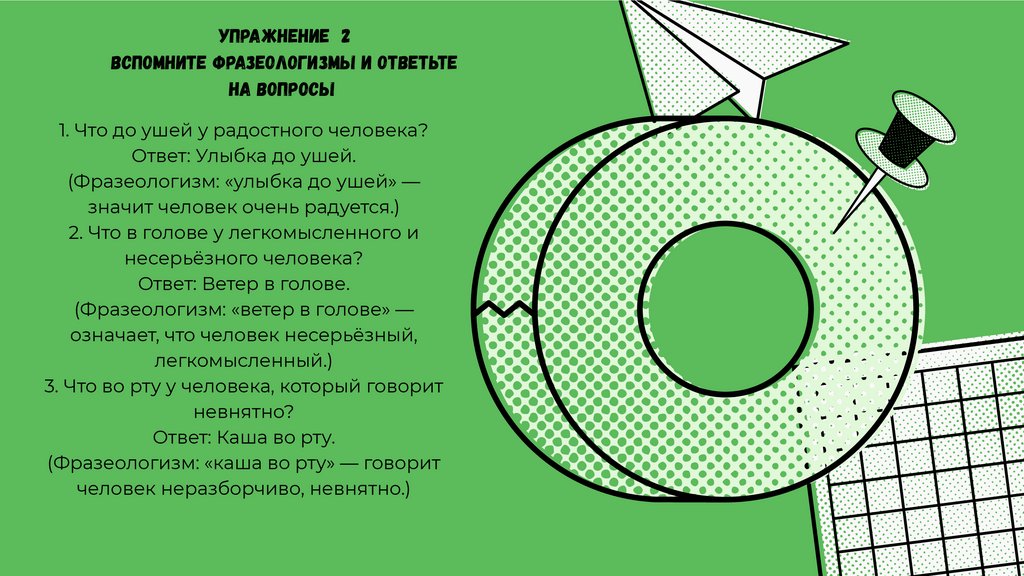 Упражнение 2Вспомните фразеологизмы и ответьте