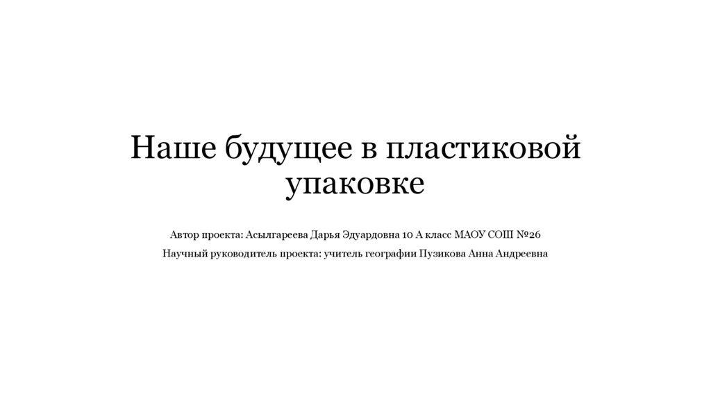 1. Наше будущее в пластиковой упаковке